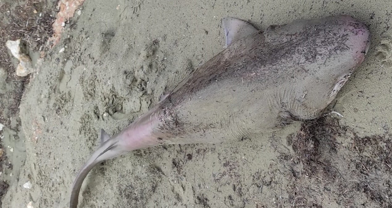 Şarköy ilçesi sahilinde yürüyüş yapanlar, sahilde ölü köpek balığı olduğunu görünce durumu yetkililere bildirdi.